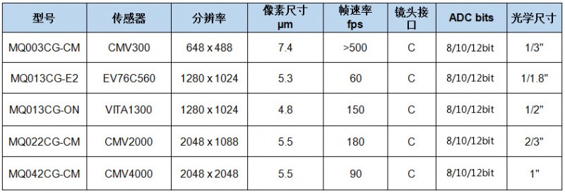 该系列相机采用USB3.0超高速数据接口,速度可达5Gbps;使用业界最新、最高级的全局快门CMOS感应器,可提供可见光和近红外(NIR)光谱范围内更高的量子效率,同时支持从VGA到400万像素的分辨率,帧速率高达600fps;其具有光隔离触发输入和频闪同步输出功能、用于用户设置和定制数据的板上非易失性存储器,以及动态范围高达100dB的HDR模式。同时,XIMEA MQ系列相机的尺寸仅为26.4mm×26.4mm×19.1mm,重26g,功耗介于1W-1.88W之间,是目前世界上最小的USB3.0相机。